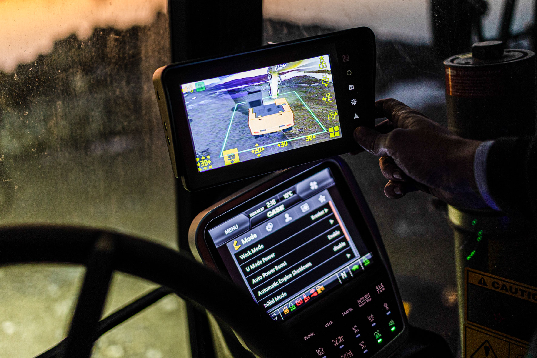 Potěšitelné je, že dle prvních obrázků bude barevný displej ve spodní řadě vybaven klasickými tlačítky. Přeci jen, 100% ovládání dotykem není v případě klíčových funkcí úplně praktické ani u osobního auta, tím méně u pracovního stroje. Ovládací panely vypadají stejně jako třeba sedačky Grammer, volant nebo joysticky „prémiově”. Troufáme si tvrdit, že strojník nových „éček” bude na svoje rýpadlo náležitě hrdý.