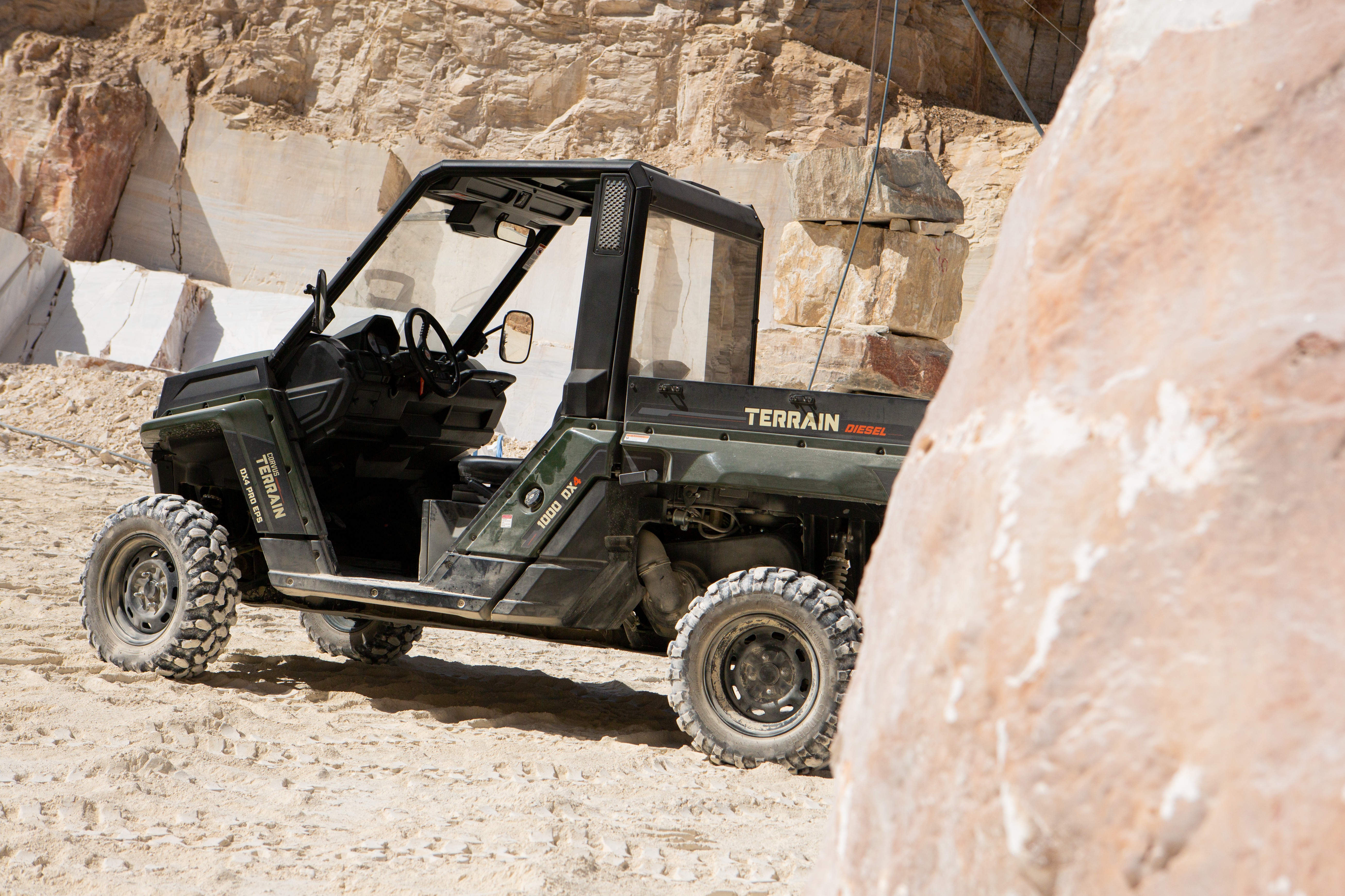 Vrchol nabídky představuje DX4 CAB. Proti modelu PRO EPS nabízí navíc plnohodnotné dveře a vnitřní osvětlení. V rámci balíčku CAB Clima pak lze přiobjednat systém HVAC, tedy vytápění, větrání a dokonce klimatizaci. Komfort na palubě je tedy na maximální možné úrovni.