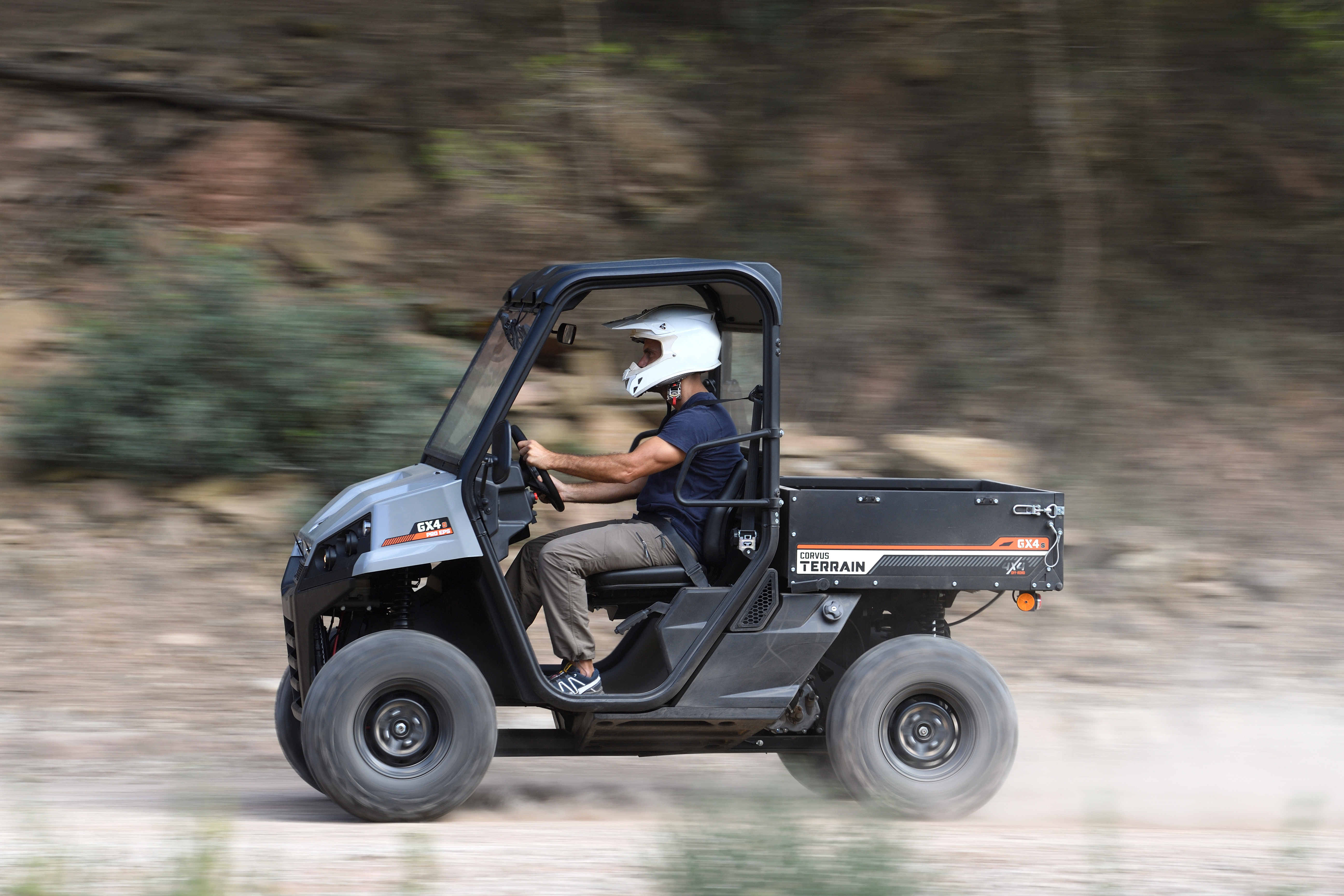 Menší z dvojice UTV značky Corvus v portfoliu AGROTEC Plus představuje model GX4s. Je dlouhý pouhých 2,65 metru a dohromady uveze 440 kg. Poháněn je čtyřdobým, jednoválcovým zážehovým motorem o výkonu 31,4 kW. Maximální rychlost činí 60 km/hod. Motor je spřažen s automatickou převodovkou CVT a výkon posílá na všechna čtyři kola. Ani náročný terén tak pro vozidlo nepředstavuje žádný problém.